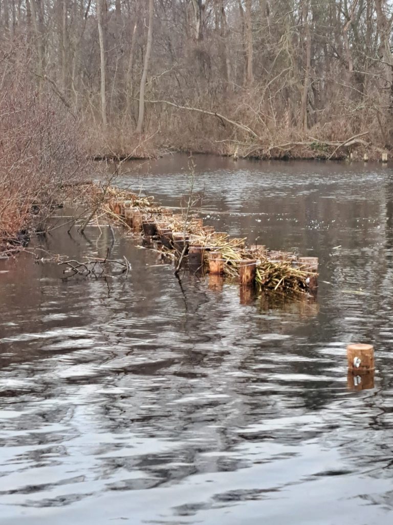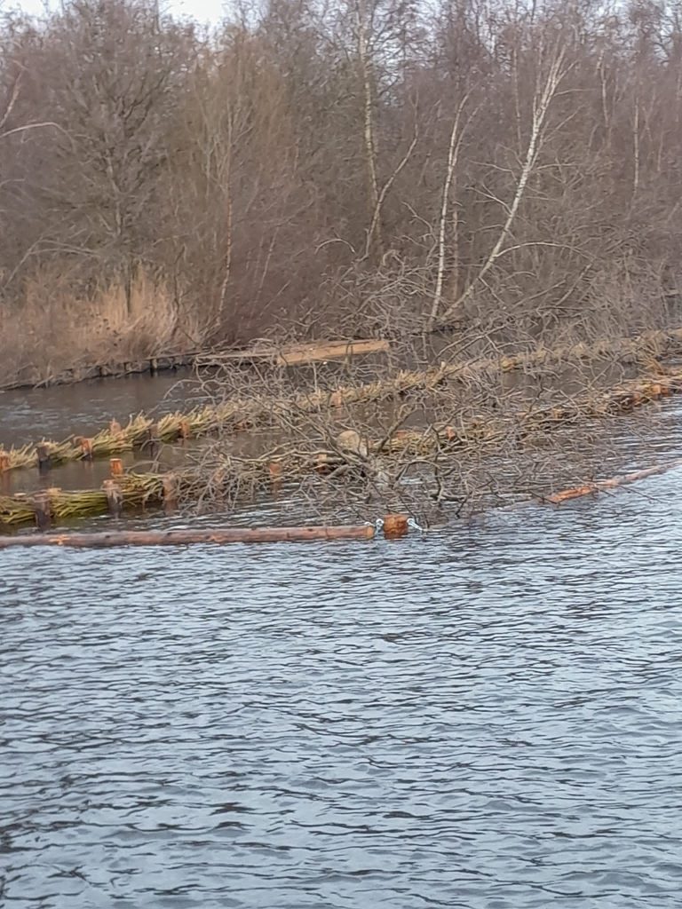 We zullen de legakkers op een zo natuurlijk mogelijke manier gaan beschermen tegen golfslag. Door het verwerken van snoeihout tussen de golfbrekers en legakker(s), takkenbossen tussen de palenrijen en het plaatsen van drijvende boomstammen als golfbrekers. Tevens zullen we zinkstukken met moerasplanten aanbrengen.