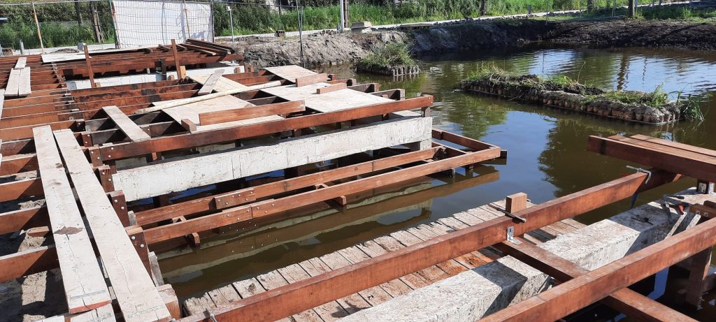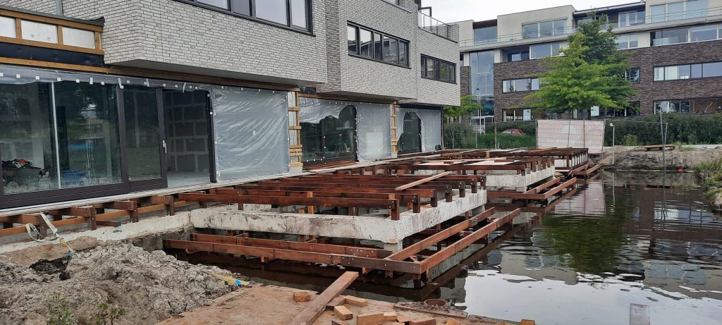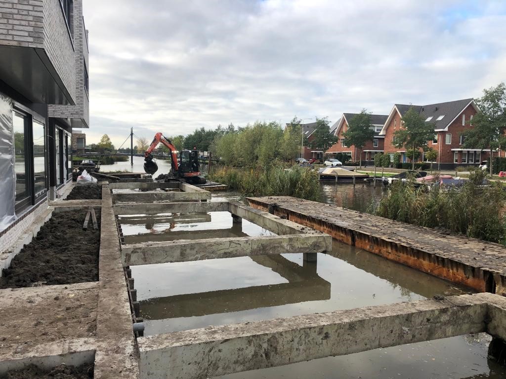 Aan de rand van Reeuwijk-Brug ligt ontwikkellocatie Oude Tol. Het is een plek waar volop water aanwezig is en diverse soorten woningbouw wordt gerealiseerd; in het water en voor beleving vanaf het water. Voor onze opdrachtgever Vosplan Vastgoedgoedontwikkeling hebben we verschillende werkzaamheden rondom de woningenbouw gerealiseerd. Dit varieerde van het maken van plankieren tot beschoeiingen en damwanden rondom de huizen die daar in aanbouw zijn.